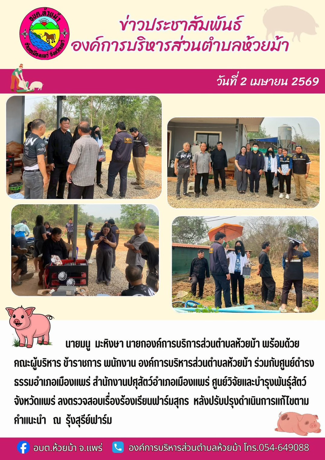 ณ ศาลาอเนกประสงค์ หมู่ที่ 1 (16 มี.ค. 2569) - ลงตรวจสอบเรื่องร้องเรียน ฟาร์มสุกร ส่งกลิ่นเหม็นจนก่อให้เกิดเหตุรำคาญในพื้นที่ข้างเคียง (19 มี.ค. 2569)