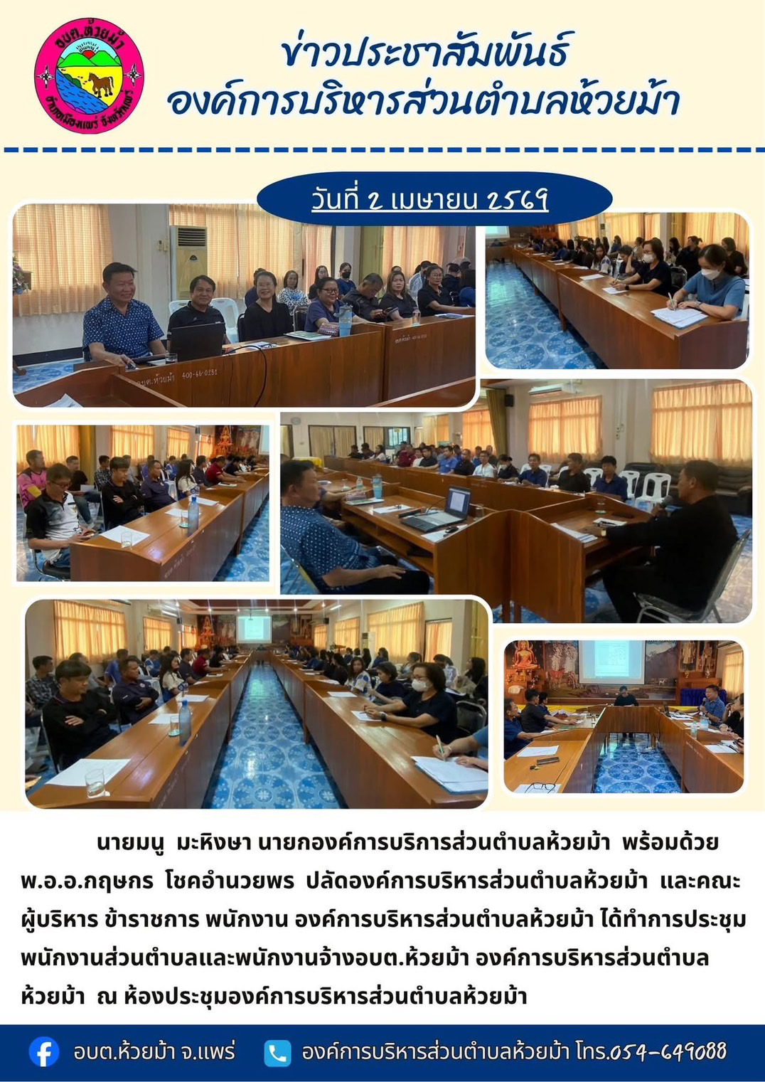 ประจำปีงบประมาณ พ.ศ.2569 ณ ศาลาอเนกประสงค์ หมู่ที่ 14 (3 เม.ย. 2569) - ประชุมพนักงานส่วนตำบล และพนักงานจ้าง อบต.ห้วยม้า ประจำเดือนเมษายน 2569 (2 เม.ย. 2569)