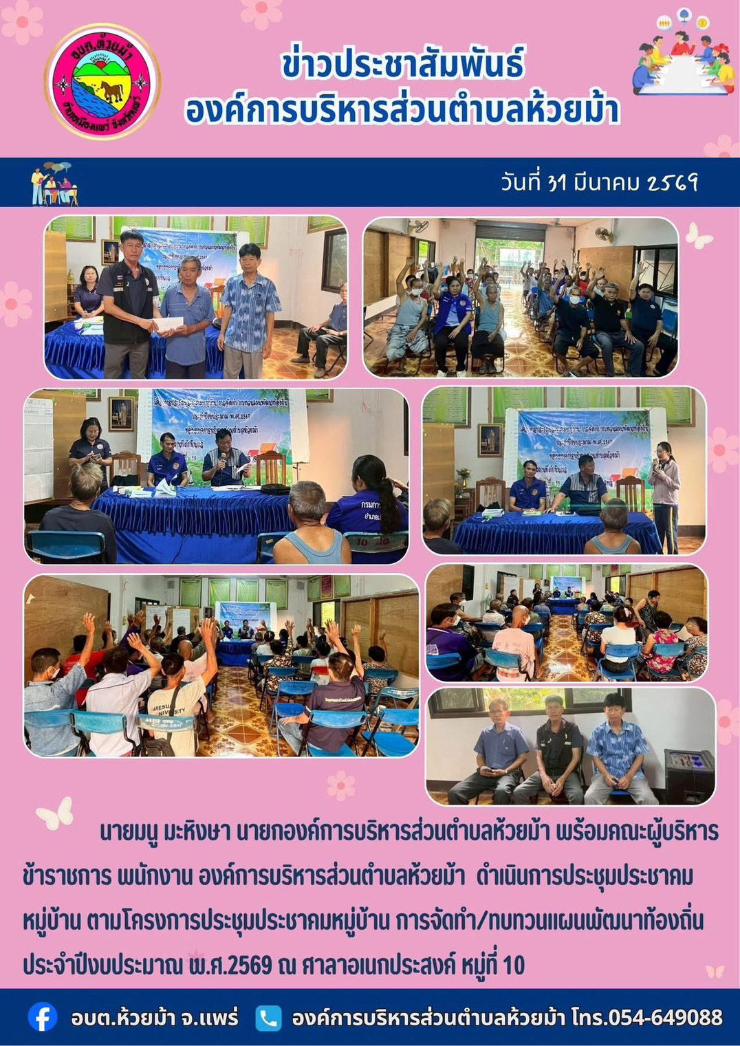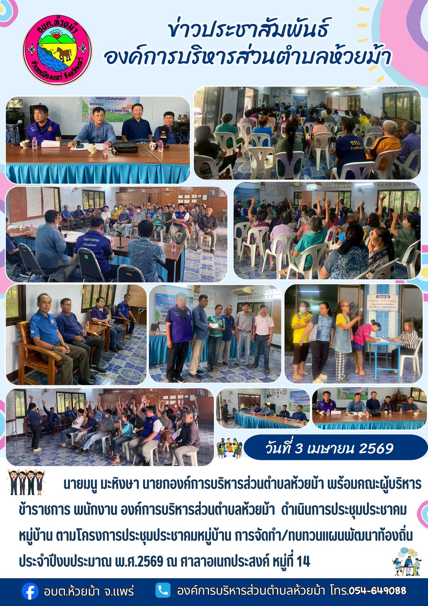 จังหวัดแพร่ (1 เม.ย. 2569) - ประชุมประชาคมหมู่บ้าน ตามโครงการประชุมประชาคมหมู่บ้าน การจัดทำ/ทบทวนแผนพัฒนาท้องถิ่น