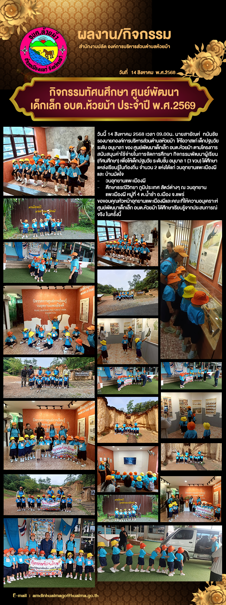 - กิจกรรมทัศนศึกษา ศูนย์พัฒนาเด็กเล็ก อบต.ห้วยม้า ประจำปี พ.ศ.2569 (14 ส.ค. 68)