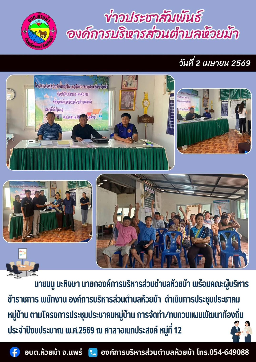 ประชุมประชาคมหมู่บ้าน ตามโครงการประชุมประชาคมหมู่บ้าน การจัดทำ/ทบทวนแผนพัฒนาท้องถิ่น ประจำปีงบประมาณ พ.ศ.2569 ณ ศาลาอเนกประสงค์ หมู่ที่ 12